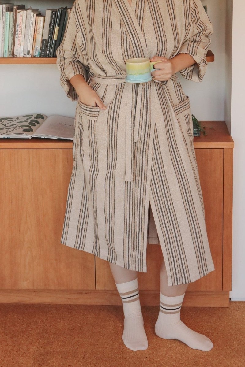 The first installment of our sock collection is an ode to our founder’s favorite robe, the Emine.