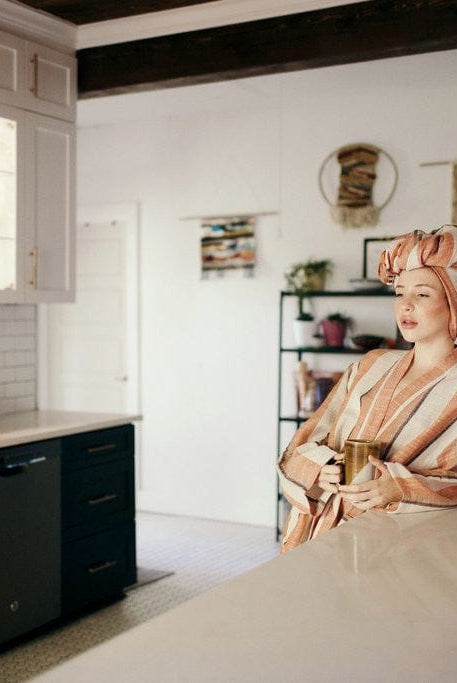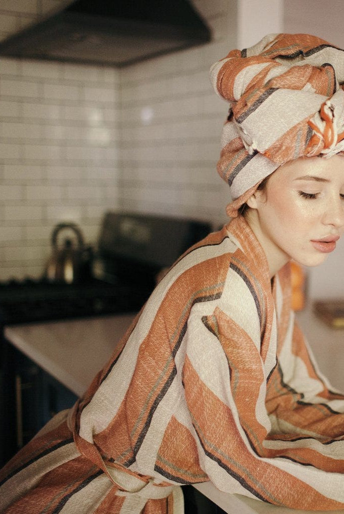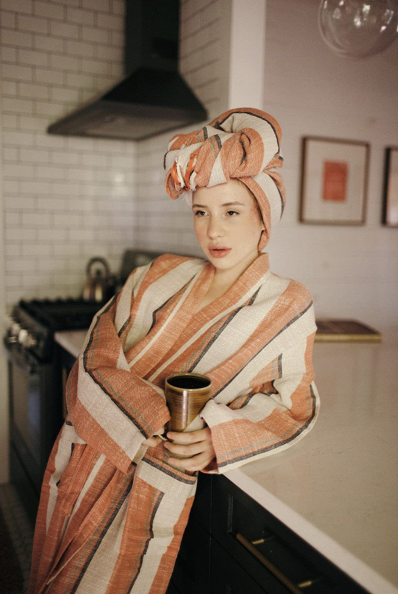 Constructed from our beloved handwoven Turkish towels, these robes are both incredibly absorbent for post-shower or swim while also pairing beautifully as a light day coat over clothing.