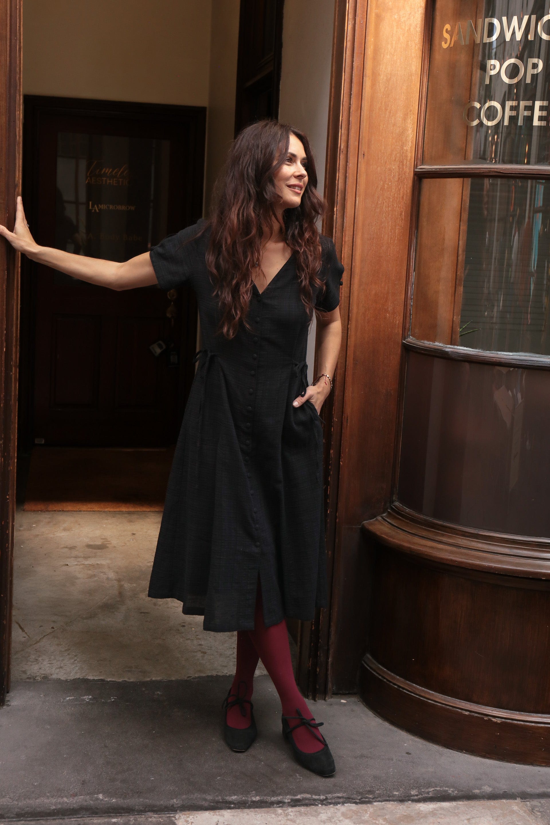 With its unique 3-way-to-style side ties, you can effortlessly adjust the Dilek to suit your needs, whether cinched at the sides to accentuate your waistline, bowed in the front and back to draw the eye, or wrapped all the way around for a classic button-down dress.