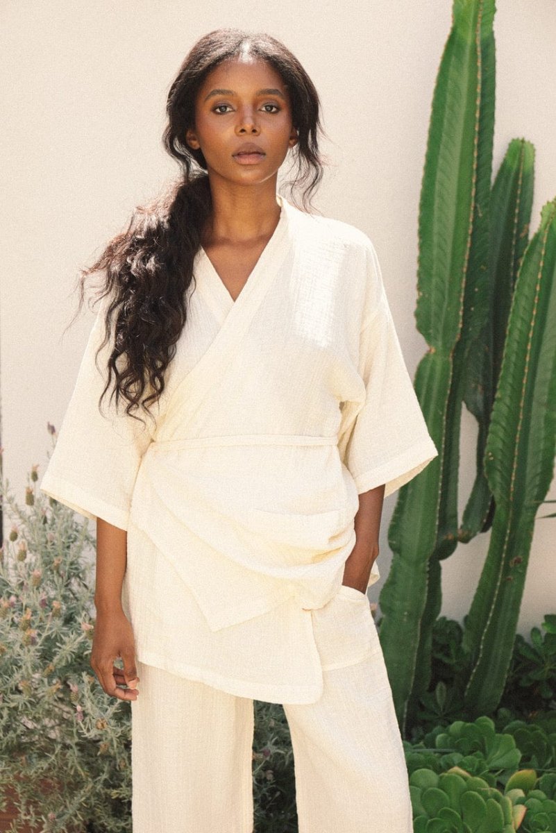 Our Kardeş Loungewear Top, inspired by our deep love of timeless Japanese design and the tailoring of the traditional Samue, is complete with a flattering wide-cut sleeve, oversized fit, and finished with a front pocket for convenience, along with the addition of lengthy front ties to allow the piece to be worn loose or cinched at the waist for a chic day-wear option.
