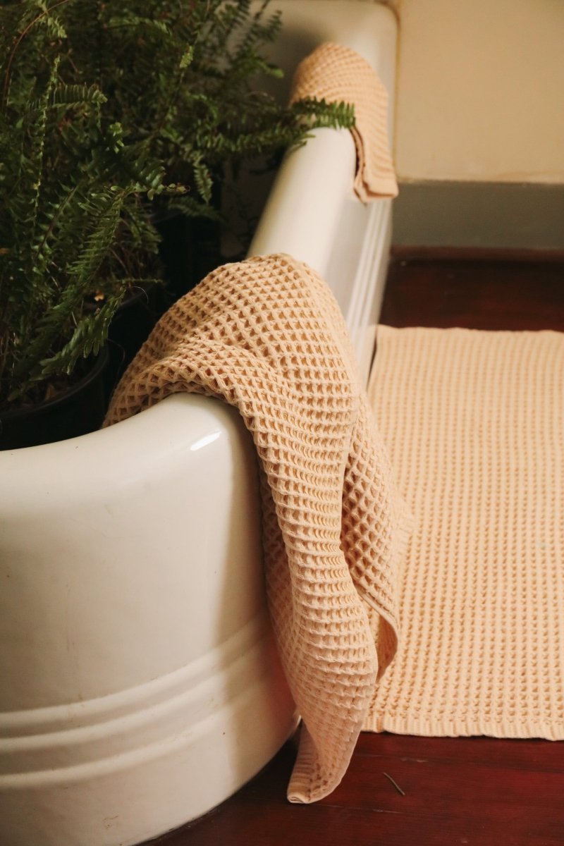 Please note: All of our handwoven textiles are washed in a traditional Turkish soap right off the loom, removing any natural allergens from the weaving process and leaving behind our signature Oddbird scent. It’s a warm, grounding aroma that’s become part of who we are for a decade. That said, if you’re scent-sensitive, a gentle soak in a baking soda and vinegar bath for a few hours, followed by a wash and delicate dry, will remove the fragrance and kick off the breaking-in process, bringing your OB towel and/or robe closer to peak softness and absorbency.